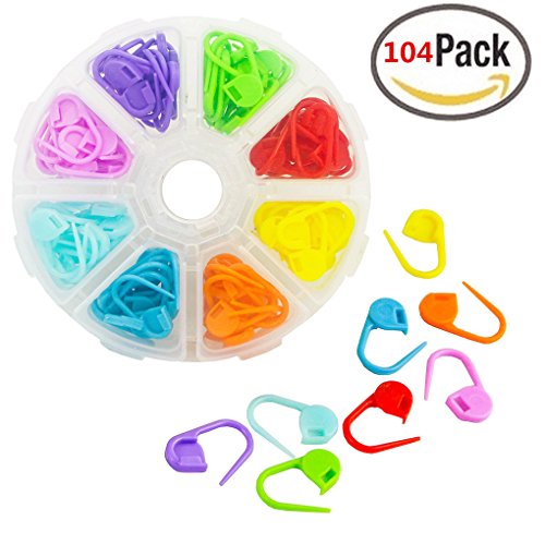 Zapour 104 Pieces Stitch Markers for Crochet Knitting Stitch Marker with Storage Box, 8 Colors
