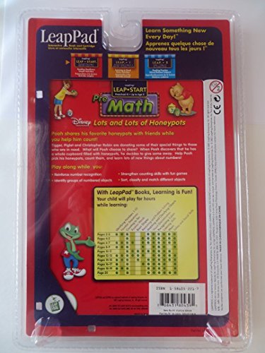 -. Binding : Toy -. Brand : LeapFrog Enterprises -. Color : multicolor -. EAN : 0708448300866 -. Feature : For Leap Pad / PreMath Preschool to K / Winnie the pooh lots and lots of honeypots version / Number recognition / Counting up to 10 -. IsAdultProduct : 0 -. Label : Leapfrog Enterpeises -. Manufacturer : Leapfrog Enterpeises -. Model : Leapfrog LeapPad Leap Start Preschool-K -. MPN : 2001 LeapFrog Enterprises, Inc. Leapfrog LeapPad Leap Start Preschool-K Pre-math with Disney Winnie The Pooh Lots and Lots of Honeypots -. PartNumber : 2001 LeapFrog Enterprises, Inc. Leapfrog LeapPad Leap Start Preschool-K Pre-math with Disney Winnie The Pooh Lots and Lots of Honeypots -. ProductGroup : Toy -. ProductTypeName : TOYS_AND_GAMES -. Publisher : Leapfrog Enterpeises -. Studio : Leapfrog Enterpeises -. Title : Leapfrog LeapPad Leap Start Preschool-K Pre-math with Disney Winnie The Pooh Lots and Lots of Honeypots -. UPC : 708448300866