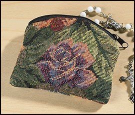 -. Title : Floral Fabric Rosary Case with Zipper Closure, 4 Inch