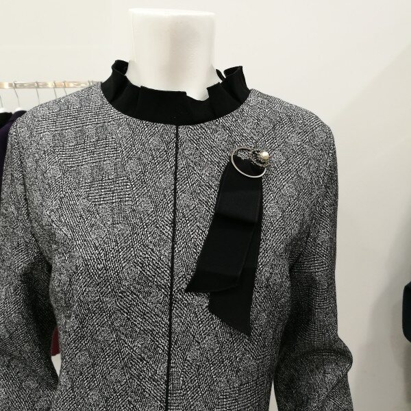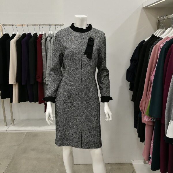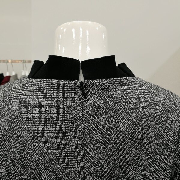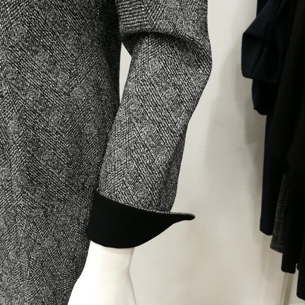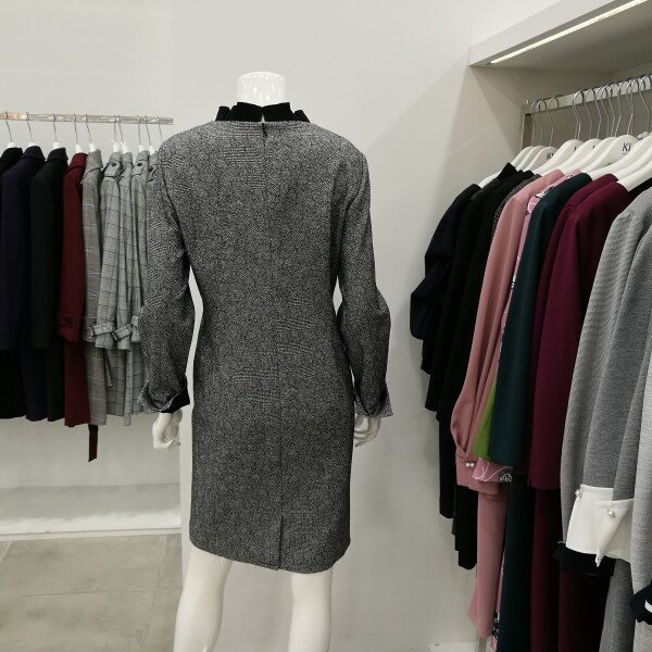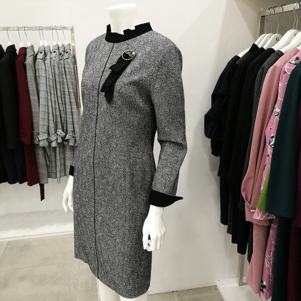 넥프릴에 고급스런 체크무늬로 벨트없이 살짝 라인이 들어가 날씬해 보이고 아주 길어보이는 효과가 있다. 약간의 스판소재도 들어가 있어 핏감도 좋다.