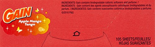 -. Binding : Health and Beauty -. Brand : GAIN -. Color : A530 -. Label : Gain -. Manufacturer : Gain -. ProductGroup : Health and Beauty -. ProductTypeName : HEALTH_PERSONAL_CARE -. Publisher : Gain -. Size : 2 pack -. Studio : Gain -. Title : Gain With Freshlock Apple Mango Tango Dryer Sheets, 105 Count