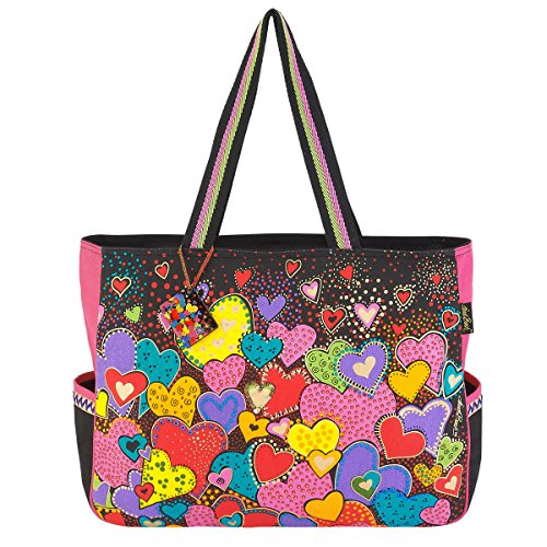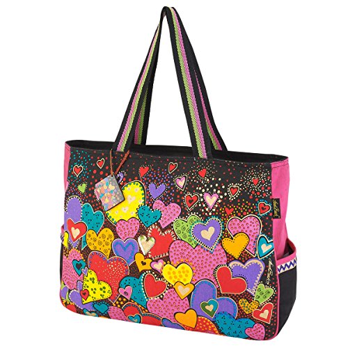 Product Description Laurel Burch Dancing Hearts Oversized Tote - LB6010 This Oversized tote stands out in a crowd with its uniqueness. Featuring a Laurel Burch design, it is outstanding in style and art. Measures approx. 19.5x5x15". Genuine Laurel Burch Products 0