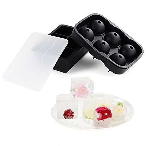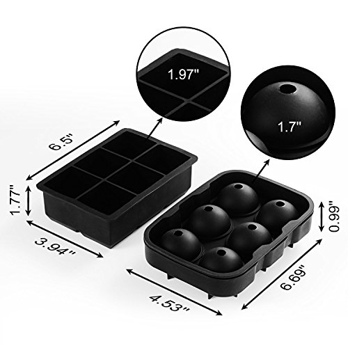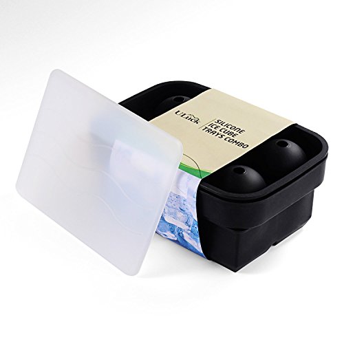 Ice Cube Trays, ULuck Silicone Ice Cube Trays Combo (Set of 2), Large Silicone Sphere Ice Ball Maker with Lid & Giant Ice Cube Molds For Highball & Whiskey Glasses, Reusable & BPA Free