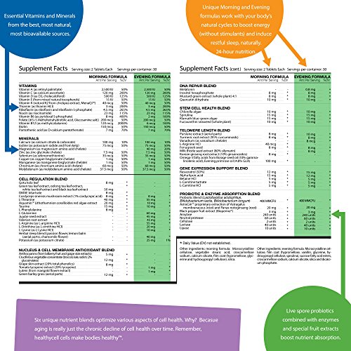Healthycell Natural Anti Aging Multivitamin with Probiotics - Whole Food Sources - Antioxidants - Without Iron - Vegetarian - AM PM Formulas for Energy...