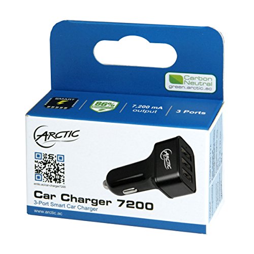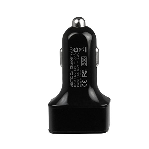 ARCTIC Car Charger 7200 – 3-Port UBS Fast Charger for Cars – Smart Cigarette Charger for for Apple iPhone 5/5S/5C, iPad, iPod, Samsung Galaxy S6/S5/S4/S3, Tab 3, Note 3/2, Google Nexus 7 and More