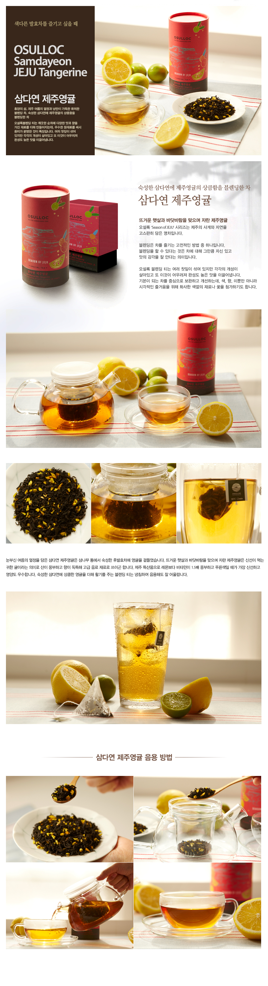 | 원재료 및 함량 | 후발효차 89.5%(국산), 제주영귤믹스 7%[(제주귤피 90%, 제주영귤 10%](제주산), 스위트영귤향(합성착향료) |