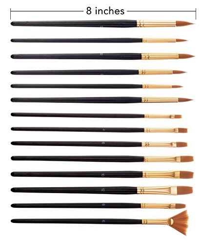 - Superior Quality Golden Synthetic Hair Brushes, No Shedding. Strong Golden Ferrules Providing No Wiggling While Painting. Short Black Wooden Handles.