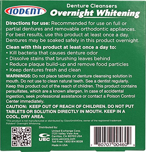 -. Feature : 20 tablets per box, 24 boxes per case / Antibacterial overnight whitening denture cleanser / Whitens & brightens, controls denture odor, and leaves dentures clean & fresh / Compare to Polident