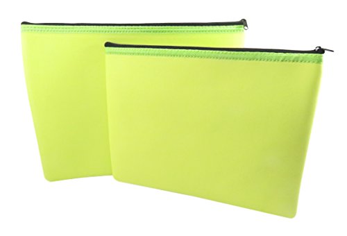 Zipper Pouch Bag School Travel Arts-n-Crafts Large and Medium Neon Green (Pack of 2)