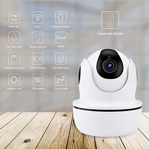 1080p HD image, 32 ft IR night vision distance, fixed visual angle can be preset. Two-way audio, motion detection, intelligent alarm, remote control of other home appliances.You can also share the screen with your family and friends.