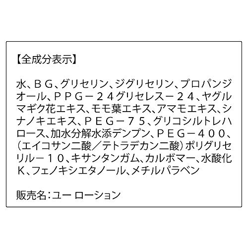 【全成分表示】水、BG、グリセリン、ジグリセリン、プロパンジオール、PPG-24グリセレス-24、ヤグルマギク花エキス、モモ葉エキス、アマモエキス、シナノキエキス、PEG-75、グリコシルトレハロース、加水分解水添デンプン、PEG-400、(エイコサン二酸/テトラデカン二酸)ポリグリセリル-10、キサンタンガム、カルボマー、水酸化K、フェノキシエタノール、メチルパラベン