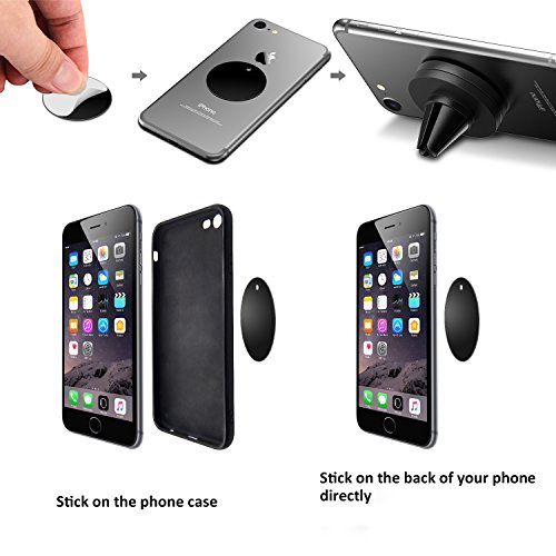 Product Tips A.Use a thinner phone case or attach metal plate directly to the back of thicker phone cases to avoid interference with magnetism. B.Before entrusting your devices with it, Test the magnetic strength by simply moving your phone back and forth or sideways. C.Remove the metal plate before using a wireless charger, as metal plate may interfere with wireless charging. D.This holder doesn't work with small circular vent.