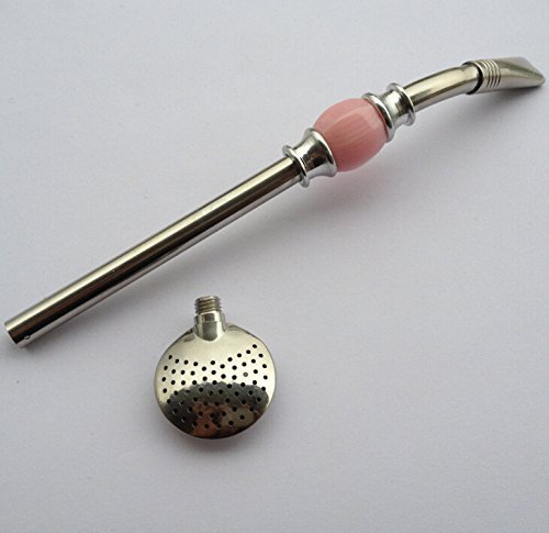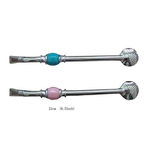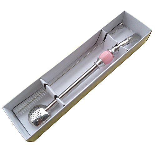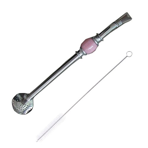 Amgate Stainless Steel Yerba Mate Tea Filtered Drinking Straws with Cleaning Brush - Straw Spiral Head Can Be Opened to Clean, 8 Inch