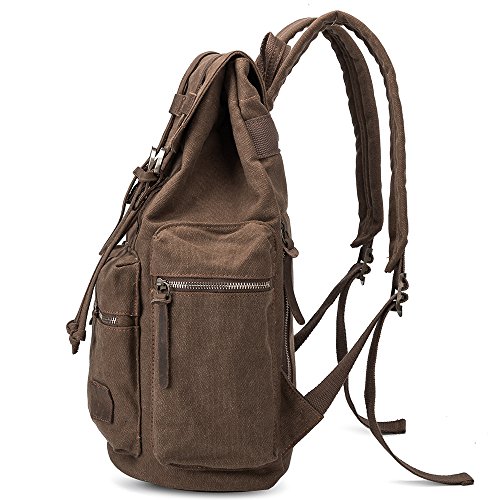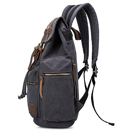 -. Feature : This Canvas backpack is Soft, strong and durable, carry comfortable. / Large Size Bag Dimensions: 43 x 32 x 18cm (17 x 12.5 x7 inch) / Material: Premium quality water cotton fabric/canvas & Crazy Horse Genuine Leather / Packing Books, Mobile Phone, Wallet, Folders and ipad / Muti-pockets design for School, Working Out, Gym Bag, Camping, Fishing, Hunting, Work, Back Packing, Biking Traveling.