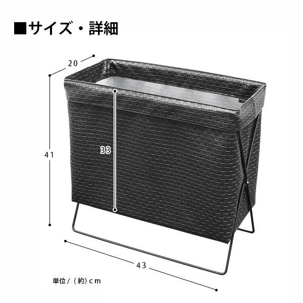 奥行き20cmで場所をとらずに置けるスリムタイプ。袋部分は立体的なエンボス加工を施したメッシュレザー調の合皮を使用。和・洋問わずお使い頂けるテイストに仕上げています。 |