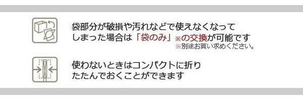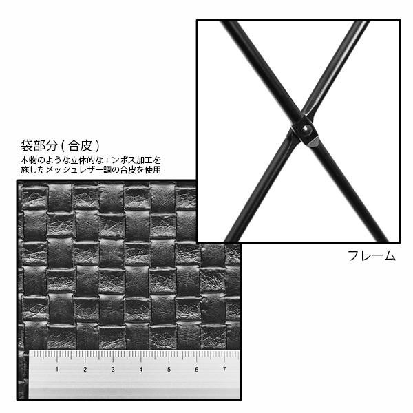 | 素材・材質 | 袋部分:合皮(PVC・コットン)、ナイロン フレーム:スチール(表面黒ツヤ消し塗装) 底板:低発泡ポリエチレン(2.5mm厚) |