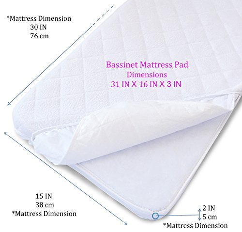 THE RIGHT SIZE PROTECTOR FOR YOUR BASSINET MATTRESS. The actual dimensions of the mattress cover protector are 31" X 16" (78.7 X 40.6 cm) to allow a good fit to other bassinet mattress a little bigger. The polyester skirt length is 3" (7.6 cm) enough to firmly secure a 2" thick bassinet mattress. LIFETIME GUARANTEE! Our prime goal is your satisfaction. Plus get a 37% instant discount today at check out!