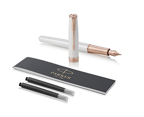 -. Binding : Office Product -. Brand : Parker -. Color : Pearl Lacquer Rose with Gold Trim -. EAN : 3501179315522 -. Feature : Pearl lacquer cap and barrel accented by rose gold-finished clip and trim / Fountain pen design with 18-karat solid gold nib with rose gold finish / Hand assembled and checked for flawless quality / Available in a range of beautiful designs and finishes / Packaged in a PARKER premium gift box -. Label : Newell Rubbermaid Office -. Manufacturer : Newell Rubbermaid Office -. Model : 1931552 -. MPN : 1931552 -. NumberOfItems : 1 -. PackageQuantity : 1 -. PartNumber : 1931552 -. ProductGroup : Office Product -. ProductTypeName : WRITING_INSTRUMENT -. Publisher : Newell Rubbermaid Office -. Size : Fine nib -. Studio : Newell Rubbermaid Office -. Title : Parker Fountain Pen, Pearl Lacquer Rose with Gold Trim , Fine nib (1931552)