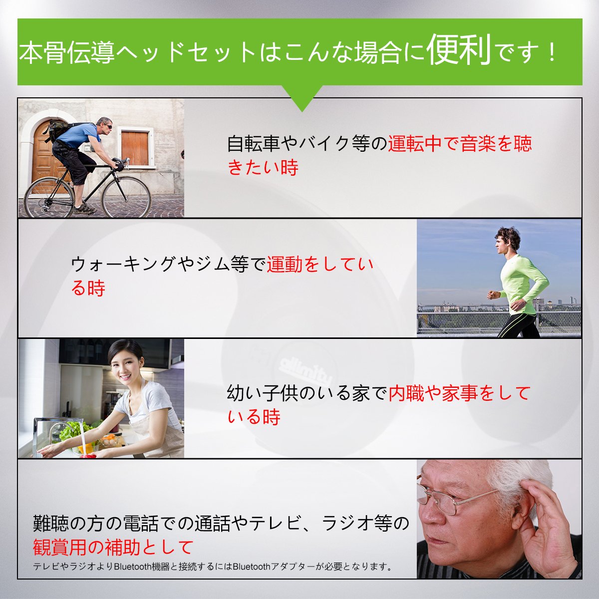 ● Since this product is a bone conduction headphone, we can guarantee Safe as it is possible to listen to the environmental sound coming from outside while listening to music.