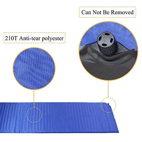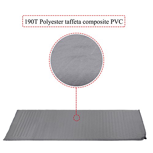 Waterproof mat. Top fabric: 210T rip-stop polyester, Bottom fabric: 190T polyester taffeta composite PVC, Valve: hard plastic.