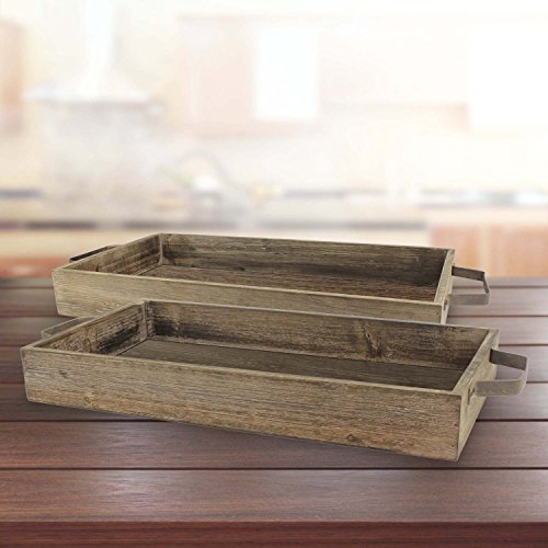 Rustic tray set comes with 1 small tray 8.5" x 19.2" and 1 large tray 10.7" x 24.2" and the small tray easily nests in the large tray for easy storage