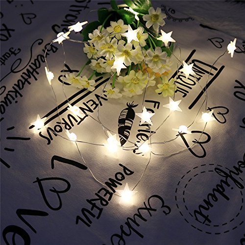 Delicore Starry Star Ornament Copper Wire String Lights- Silver Plated Copper Flexible Wire 7ft 20 LEDs for Covered Indoor party Christmas Feastival Wedding Children's room & Home