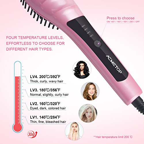 Hair Straightening Brush, ACMETOP Electric Ceramic Straightener Iron/ Comb with Healthy Ionic H...
