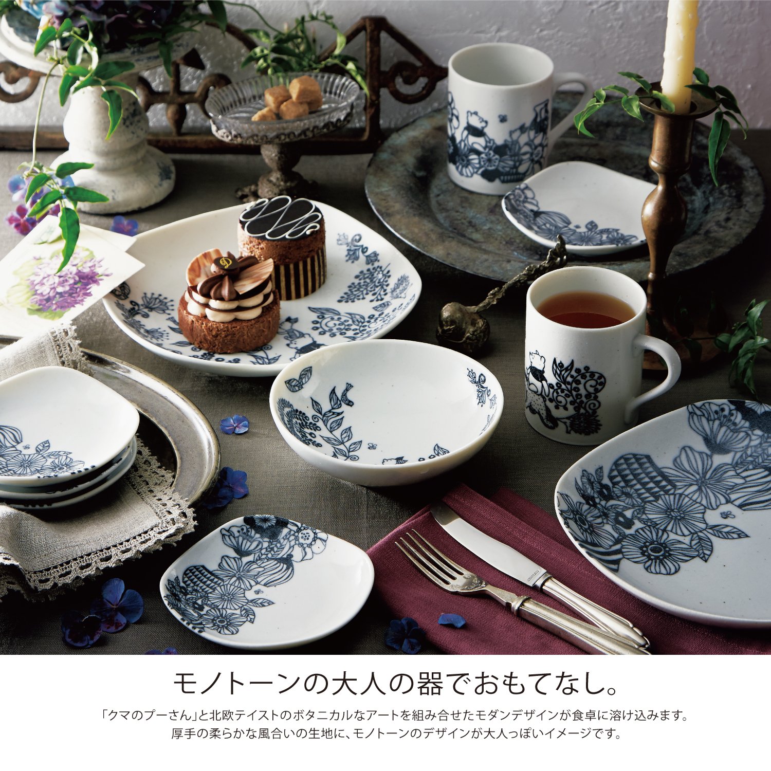 Modern design combining "Winnie the Pooh" with Botanical Art of Northern Europe taste.