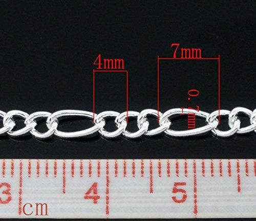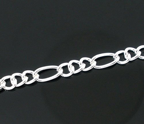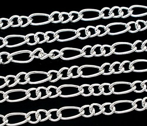 Figaro Cable Link Chain, 10 Meters - Over 30 Feet, 7x3.5mm - 4x3.2mm (Silver Plated) - Bulk Wholesale