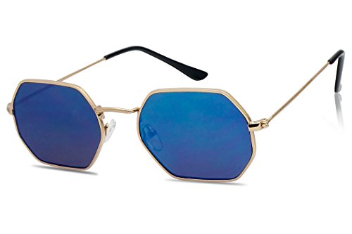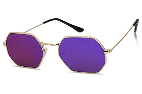 Modern Slim Metal Geometric Flat Mirrored Lens Unisex Octagon Style Sunglasses