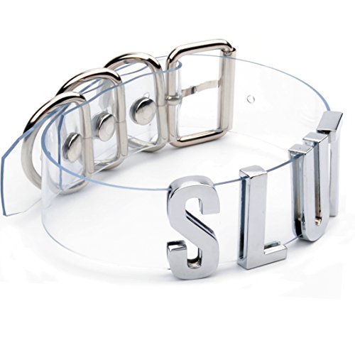 ✔ DETAILS: Premium Quality Clear Vinyl Word Collar Choker Necklace is made of thick Vinyl, Doesn't crease, rip, fold, any of that. This Clear Vinyl Name choker will look cute for a long time! The Stainless Steel letters fit snugly, so you don't have to worry about them falling off. Easy on/off closures makes this Name choker very comfortable.