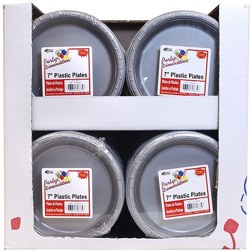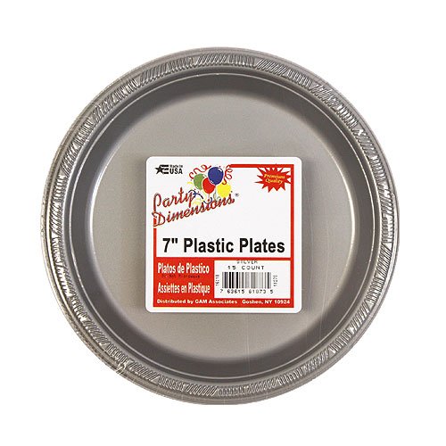 Studio : King Zak Industries, Inc. Publisher : King Zak Industries, Inc. Binding : Kitchen Product Description Party Dimensions 7" Plastic Plate, Silver, 15 Count. This item is part of a set that includes a 9" and 7" Plate, 12 oz. Bowl and an 18 oz., 12 oz. and 9 oz. Cup. Matching Cutlery and Napkins also available. Comes in 16 colors: White, Ivory, Yellow, Pink, Lime Green, Hydrangea, Light Blue, Sunshine Yellow, Island Blue, Red, Orange, Silver, Blue, Hunter Green, Purple and Black. Designed for all occasions, banquets, dinners, parties, upscale catering and home. 0