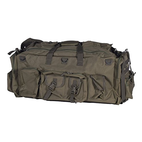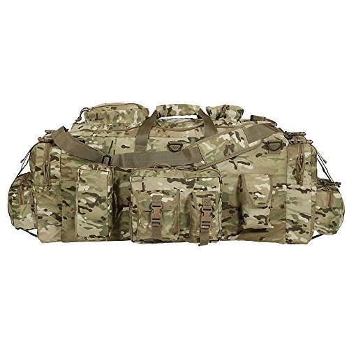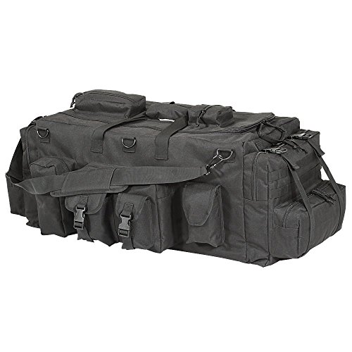 Studio : VooDoo Tactical Publisher : VooDoo Tactical Binding : Sports Product Description This bag is large enough to carry your armor and other deployment gear with ease. At 39"L x 18"W x 15"H you will be thrilled to see how much gear you can pack into its cavernous central compartment and the multiple assorted-size exterior pouches. Then you can use the double compression straps at each end to tighten your load down and prevent things shifting around. Need even more pouches? You can add any MOLLE compatible pouch to the PALS webbing on the exterior. Includes a wrap around carry handle in the center, adjustable removable shoulder strap with movable pad to give you shoulder a little bit of protection. When the load gets too heavy, unfurl the padded adjustable shoulder strap harness concealed in the bottom of the bag and carry it like a giant backpack. 0