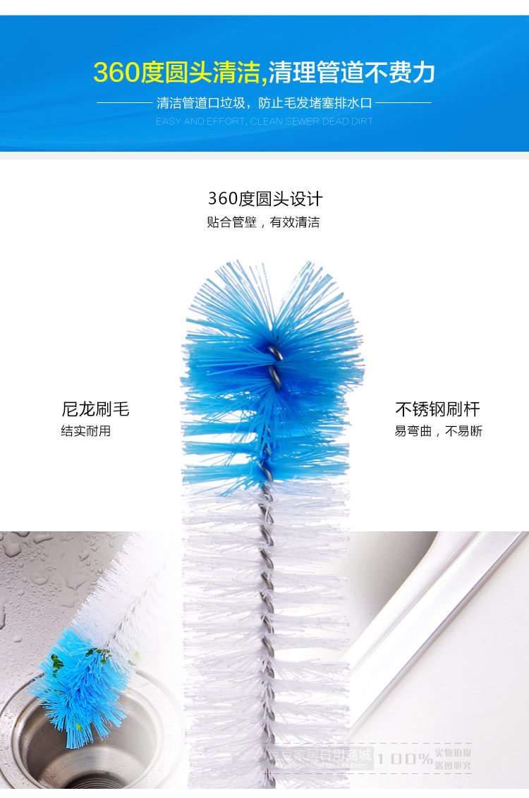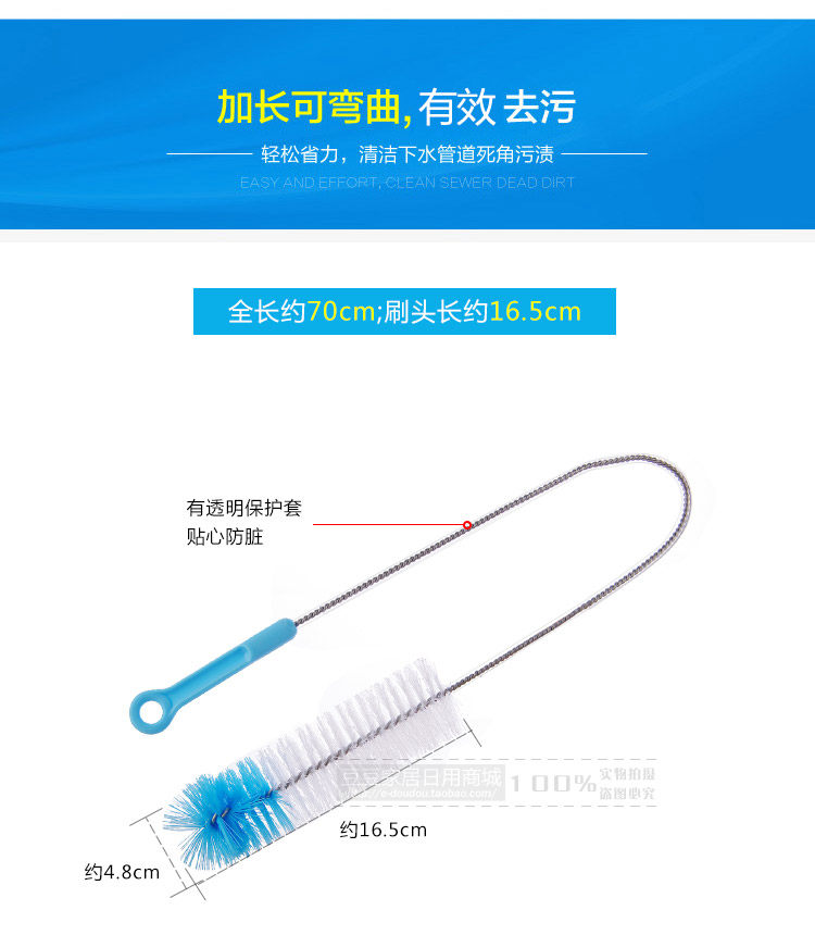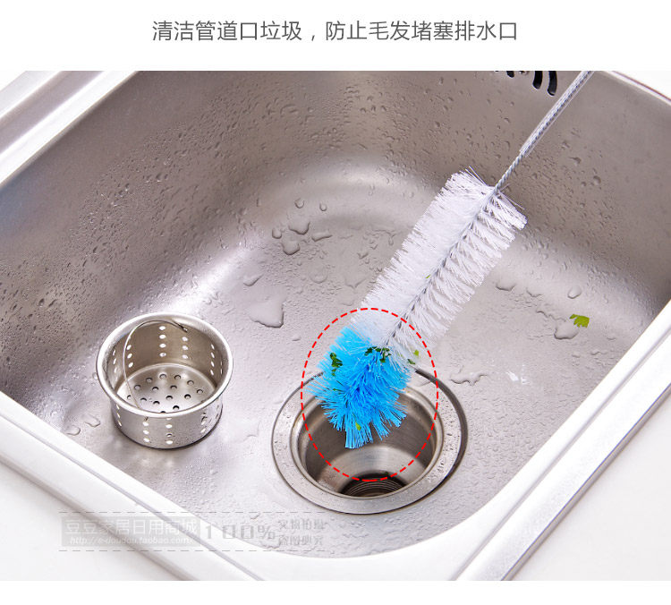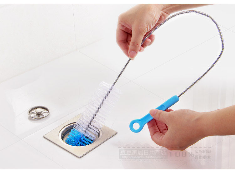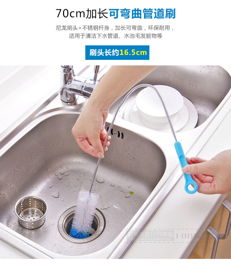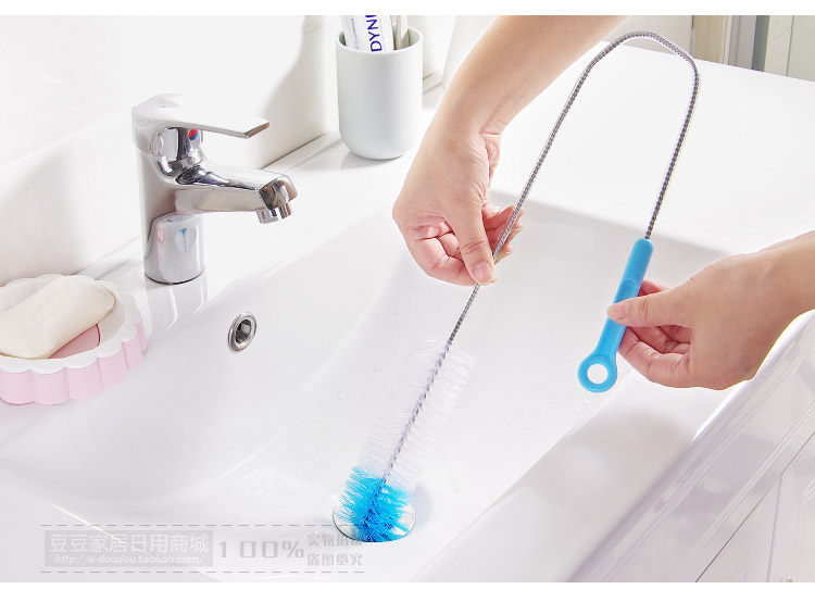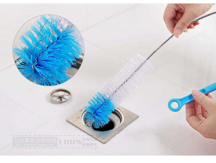 Long handle, nylon brush + stainless steel handle body, lengthenable bending, environmental protection and durable, suitable for cleaning the sewer, pool, clean hair.