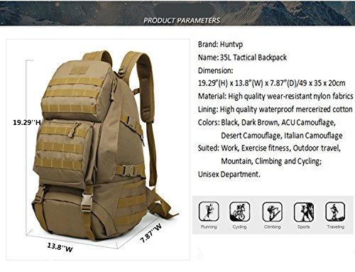 -. Title : Huntvp Military Tactical Backpack Rucksack Gear Assault Pack Student School Bag with USB Port