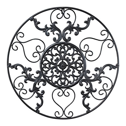 gbHome GH-6775 Metal Wall Decor, Decorative Victorian Style Hanging Art, Steel Décor, Circular Medallion Design, 23.5 x 23.5 Inches, Black Circle