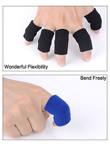 - Quantity: 20 pieces (10 x blue finger sleeves, 10 x black finger sleeves), can meet your daily needs for replacements when playing games, doing exercises, etc.; Size: elastic sleeves, can fit your fingers well
