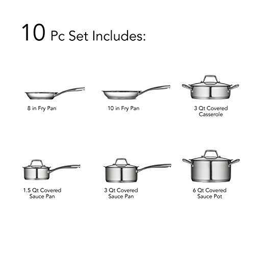 -. Feature : Premium 18/10 stainless steel cookware vessel and lid feature mirror-polish exterior finish / Flared edge simplifies pouring, while riveted cast handles are ergonomically designed to ensure a comfortable and firm grip / Compatible with Gas, Electric, Ceramic Glass and Induction cooktops and oven-safe up to 500F / 260C / Set includes: 8 in Fry Pan; 10 in Fry Pan; 3 Qt. Covered Casserole; 1.5 Qt. Covered Sauce Pan; 3 Qt. Covered Sauce Pan; 6 Qt. Covered Sauce Pot / Dishwasher safe, but handwashing is recommended; Made in Brazil, assembled and packaged in USA and offered under Lifetime Warranty