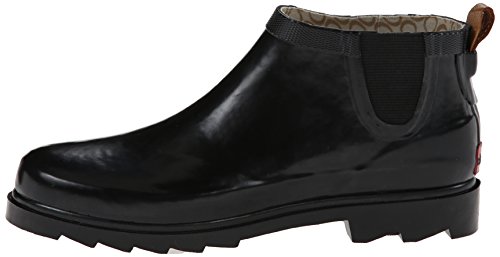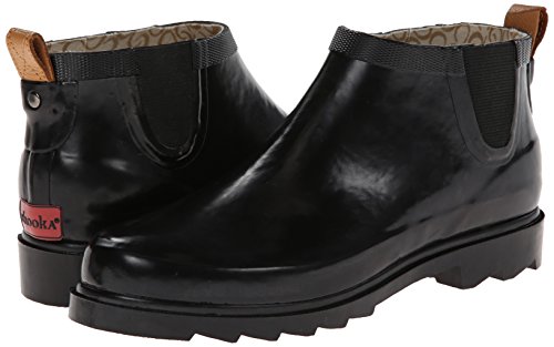 Ankle-high rain boot featuring dual elastic-gore side panels and rear pull loop