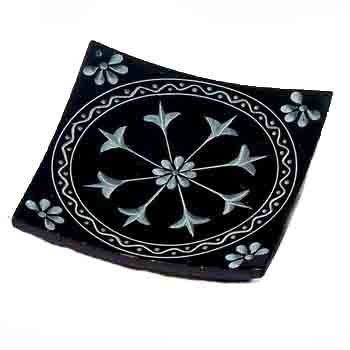 Handcrafted Soapstone Incense Holder with Mother of Pearl Inlay - Flower Mandala Plate