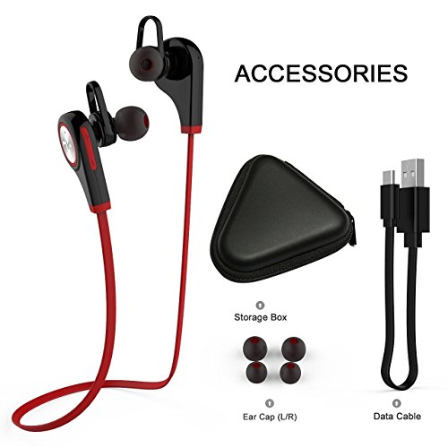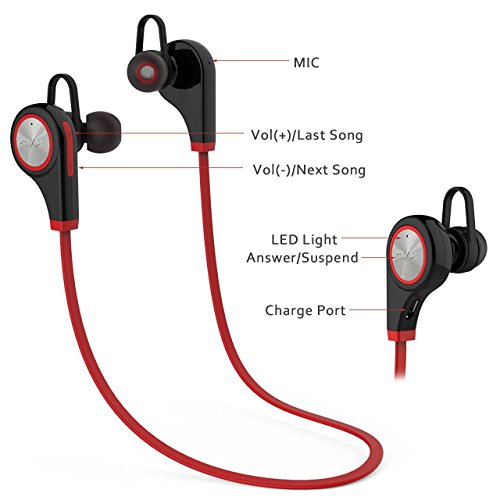 Earphones,TechCode 2016 New Wireless V4.1 Earbuds in- Ear Headphones Sports Running Gym Exercise Sweatproof Headset for All Android Phones and All iphones(Q9-Red)