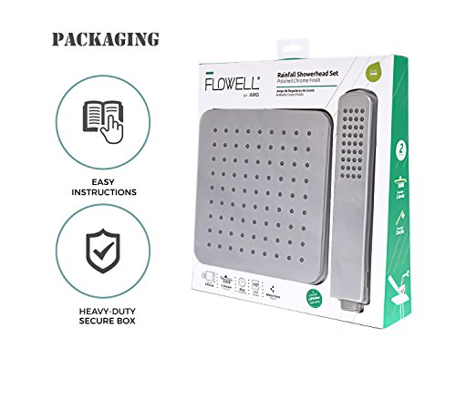 AMG - Manhattan High Pressure Rainfall Shower Head Set (117 Jets - Combined) with Modern Design, Chrome Finish with Water Diverter and Hose.