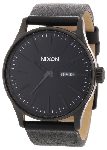 -. Title : Nixon Sentry Black-Tone Dial Stainless Steel Leather Quartz Men's Watch A105-001