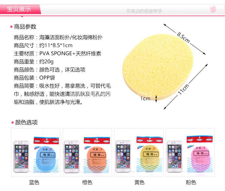 海澡棉 化妆棉 卸妆棉 洗脸扑 粉扑 便携洗面扑 脸部化妆棉 1片装