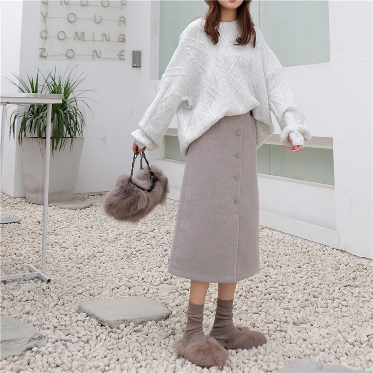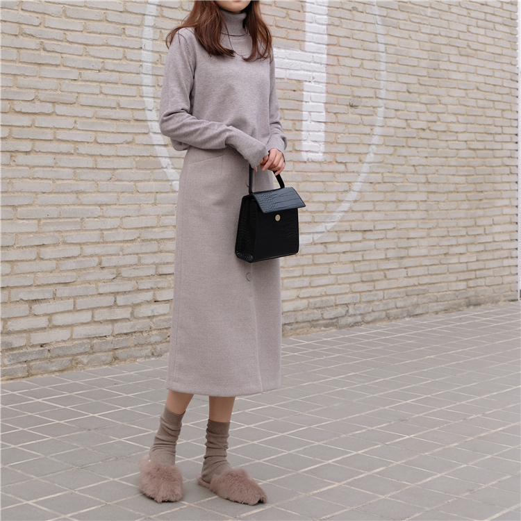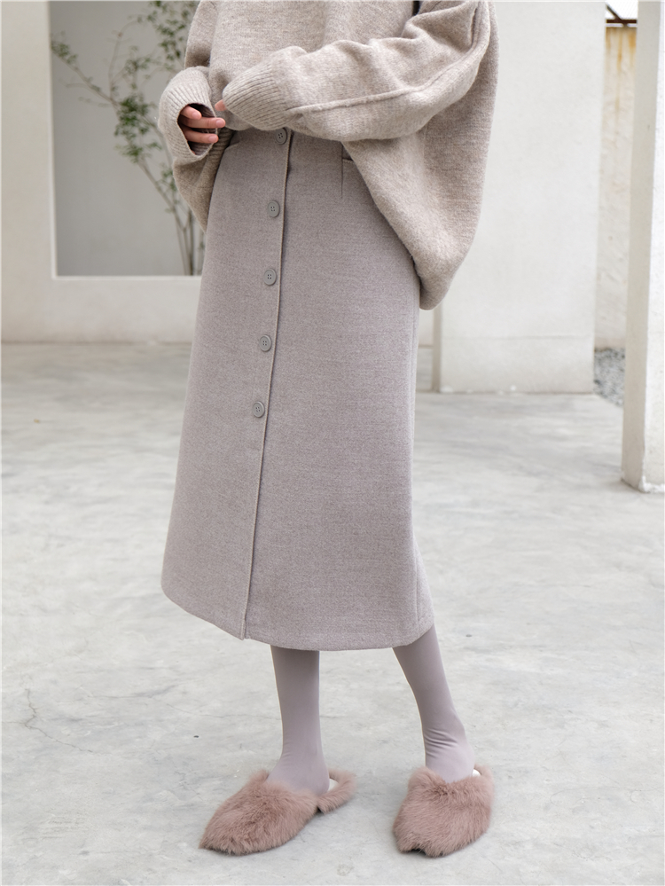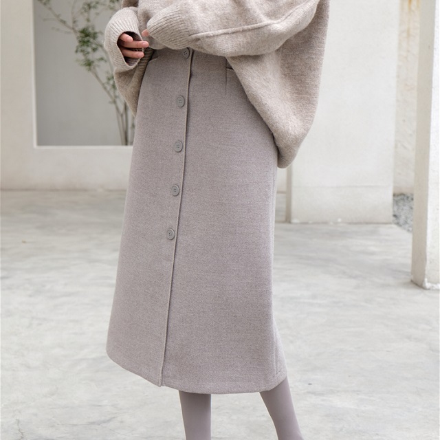 ハイウエストでスタイル良く、美脚効果も期待できる大人きれいな膝下丈スカート。