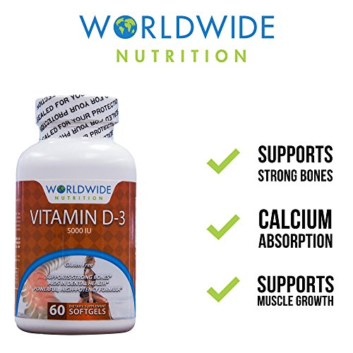 Worldwide Nutrition's advanced high potency Vitamin D3 (5000iu) softgel capsules allow for an easy-to-swallow method and promotes rapid release for optimal absorption and assimilation into the body.