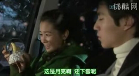 视频截图(男主角正在车上拿出礼物送给女主角)