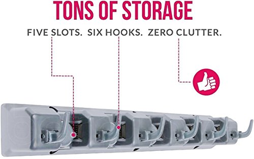 - NO-SLIDE GUARANTEE - Commercial Grade Hanger with 50 pound holding capacity! Thanks to the metal spring loaded, double rubber gripped slots, whether wet mops, dirty rakes or baseball bats, we guarantee nothing slips, or your money back!