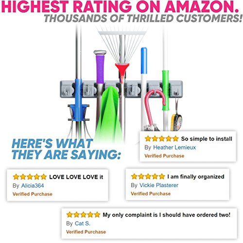 - RIDICULOUSLY EASY INSTALL - Included with your heavy duty broom holder are all the screws and anchors needed to mount shelf securely, along with clear step-by-step instructions and video that allow even the clumsiest of us can install easily in just minutes!