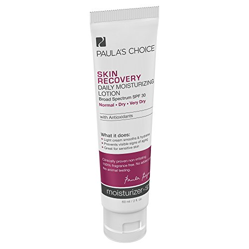 SKIN RECOVERY Daily Moisturizing Lotion SPF 30 goes above and beyond what other daytime moisturizers provide. This creamy formula replenishes dry skin for a younger-looking appearance while helping to protect from sun damage and early skin aging. It has an abundant mix of potent antioxidants, skin-restoring ceramides, and anti-aging peptides to visibly smooth fine lines and wrinkles while adding a satin glow for skin that looks younger. Works beautifully under makeup. This moisturizer does it all with a blend of gentle broad-spectrum mineral SPF, essential hydrating ingredients, and skin-rejuvenating peptides and antioxidants. Not only helps reduce the risk of early aging of skin, but also helps defend against signs of environmental assault. Is essential for restoring and improving a youthful-looking radiance. All Paula's Choice products are 100% fragrance free, non-irritating, and never tested on animals.Feature